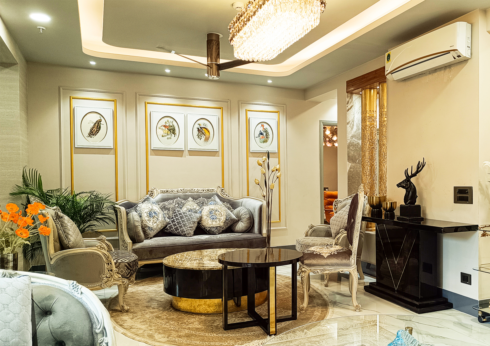 rom cozy family spaces to luxurious entertainment zones, we design drawing rooms, dining areas, and lounges that reflect your lifestyle. With a perfect mix of comfort and class, our designs cater to both daily living and special gatherings.