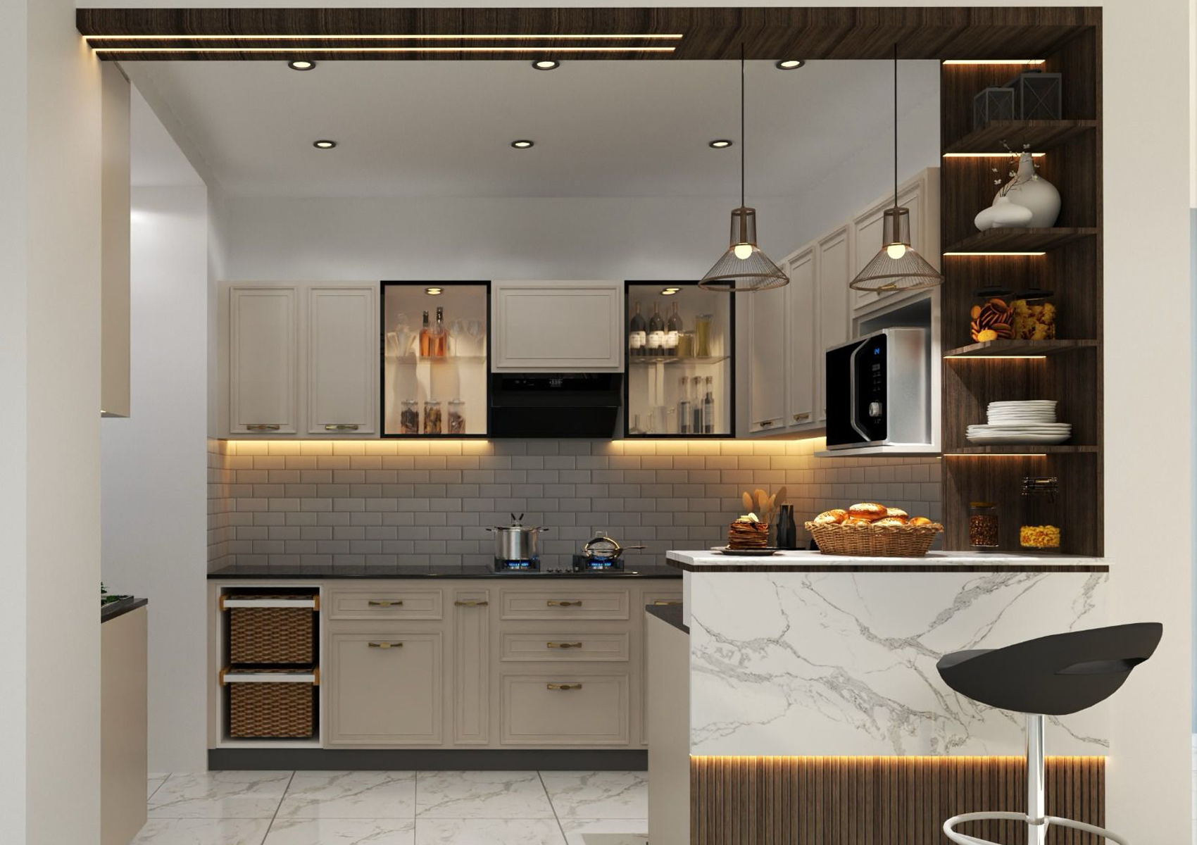 Designed for efficiency and aesthetics, our kitchens feature modular layouts, smart storage, and high-end finishes. We focus on creating ergonomic, well-ventilated, and visually appealing spaces that enhance the joy of cooking.
