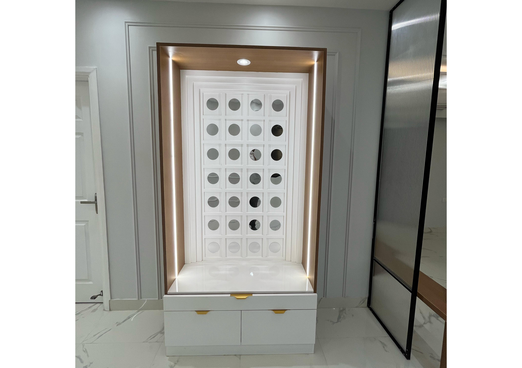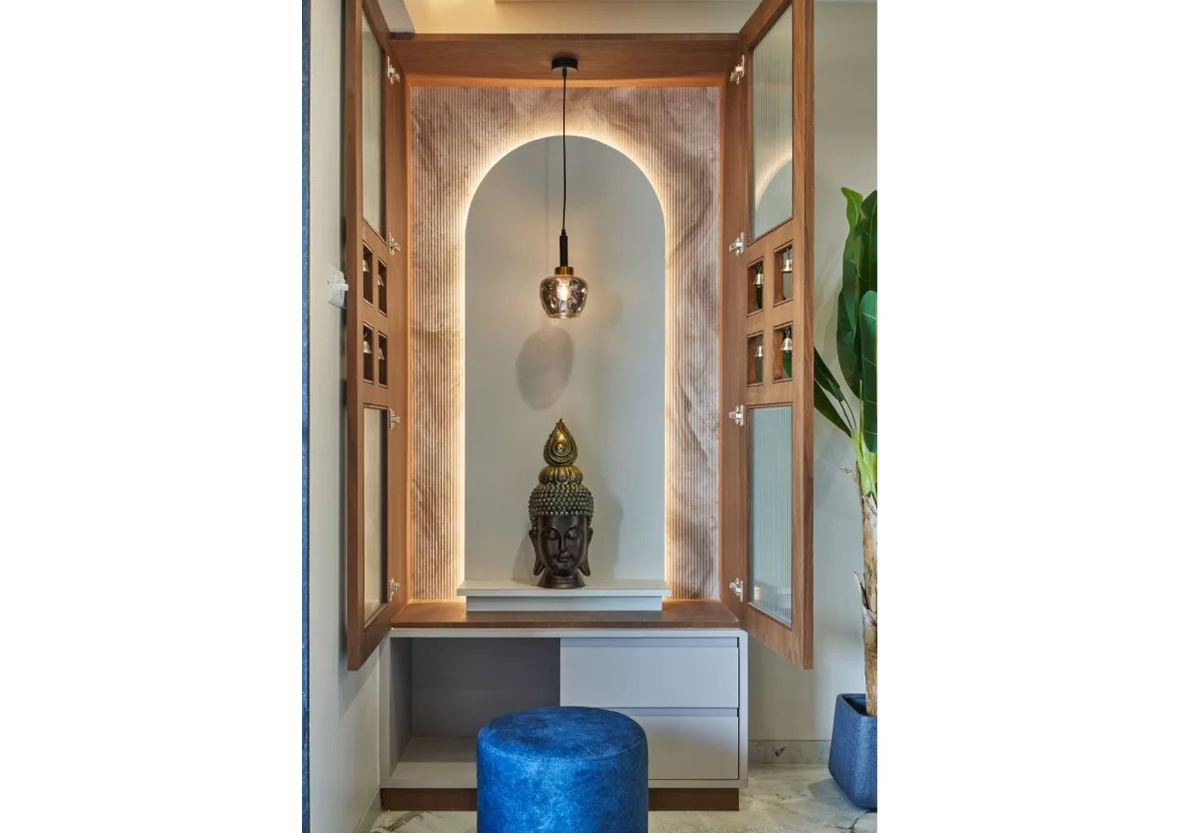 A serene and sacred space, our Mandir designs reflect spirituality and tranquility. We incorporate intricate detailing, ambient lighting, and traditional elements to create a peaceful environment for worship and meditation.